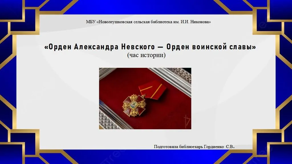 "Орден Александра Невского - Орден воинской славы" Час истории