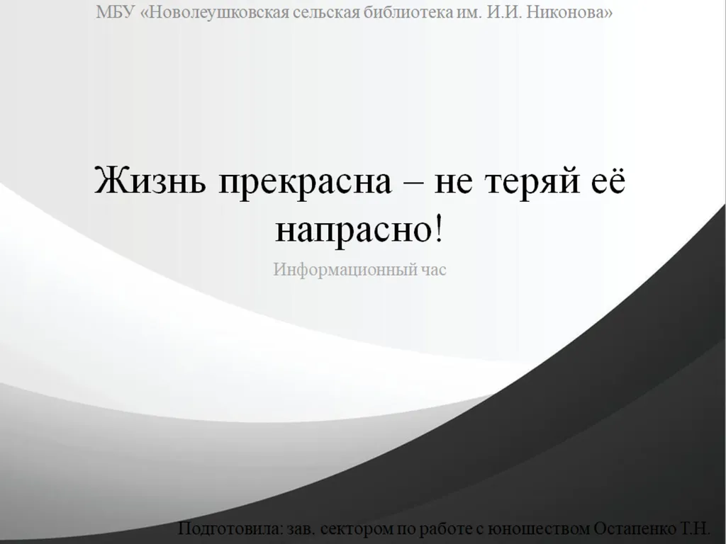 "Жизнь прекрасна - не теряй её напрасно!" информационный час